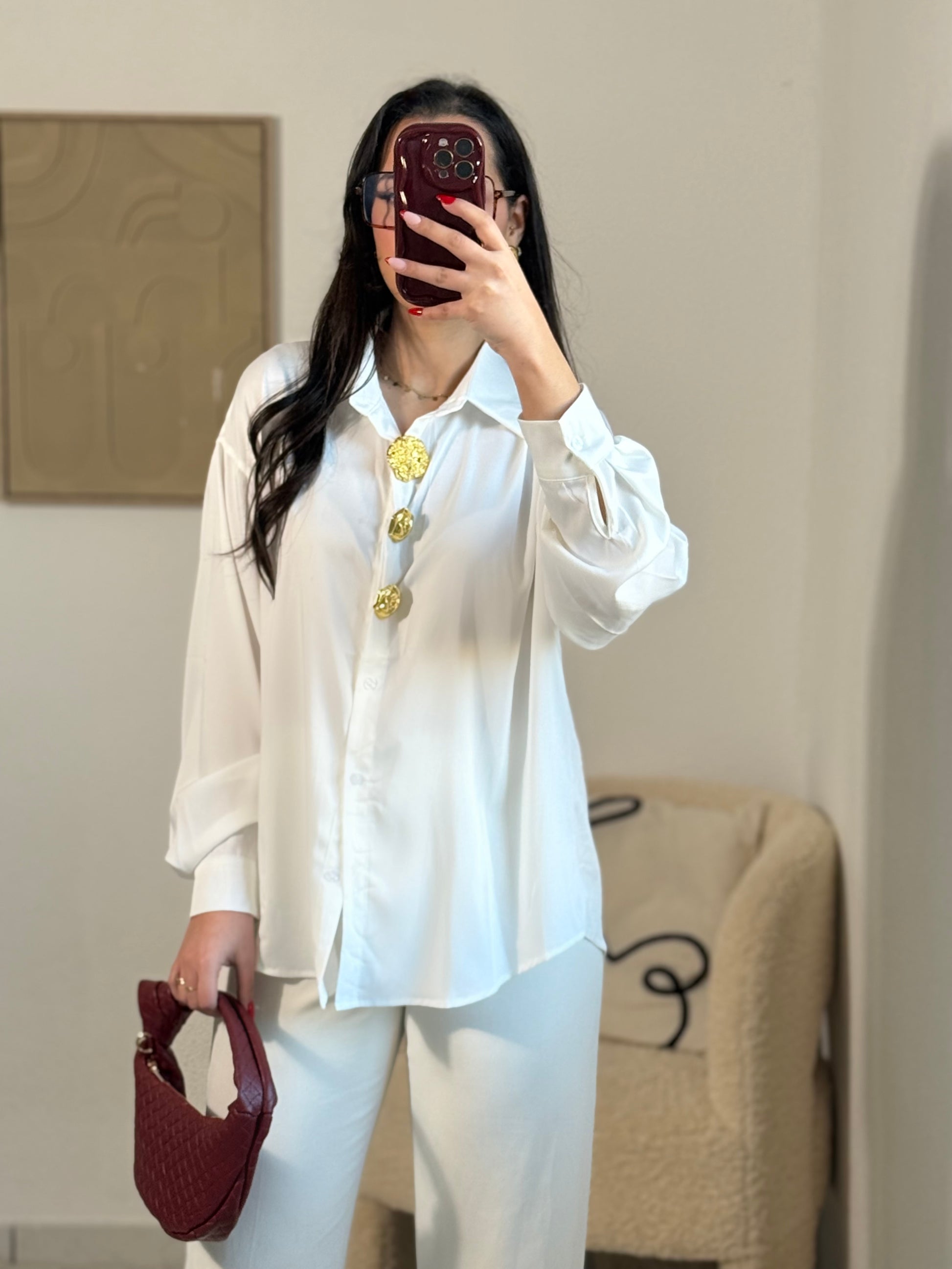 Chemise à boutons avec détails de broches sur le haut de la blouse
