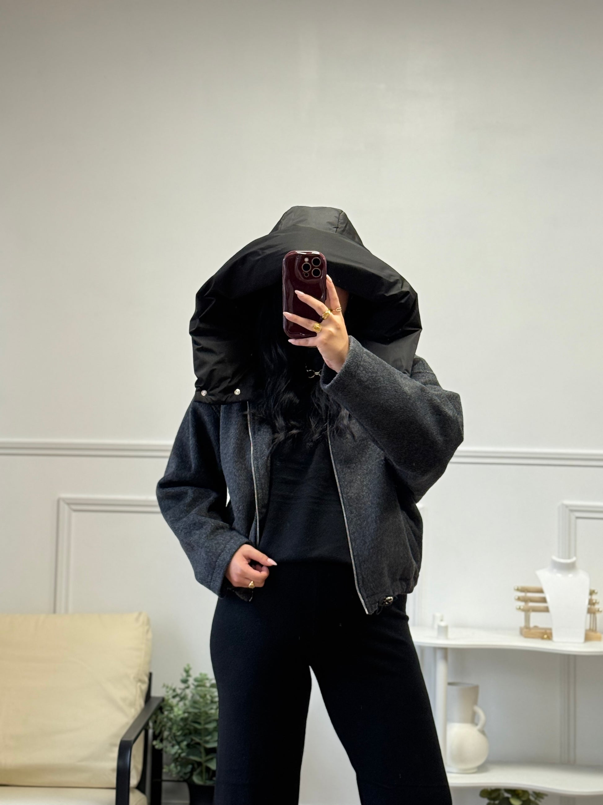Manteau court à capuche